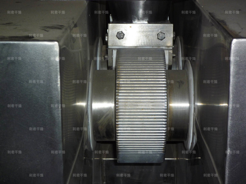 通过改变辊面开槽形式,可得到片状、条状、扁球状物料。