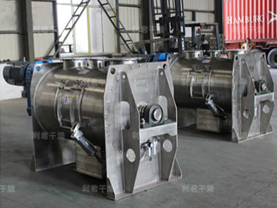 该机型由传动机构、卧式筒体、犁刀、飞刀四部分组成,物料在犁刀作用下沿筒壁作轴向流支,当物料流经飞刀时被高速度旋转的飞刀抛洒,从而在较短时间内达到均匀混合。